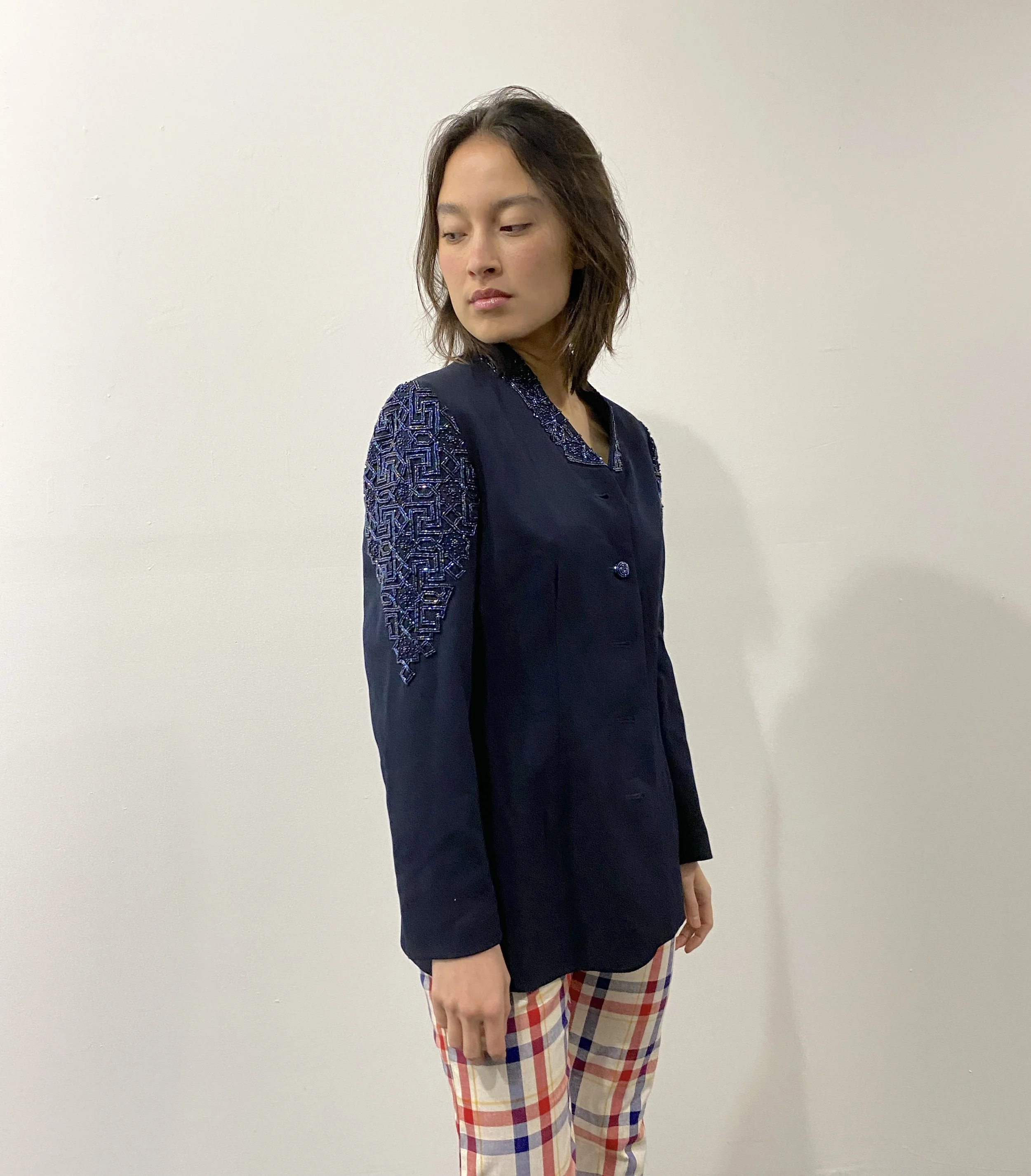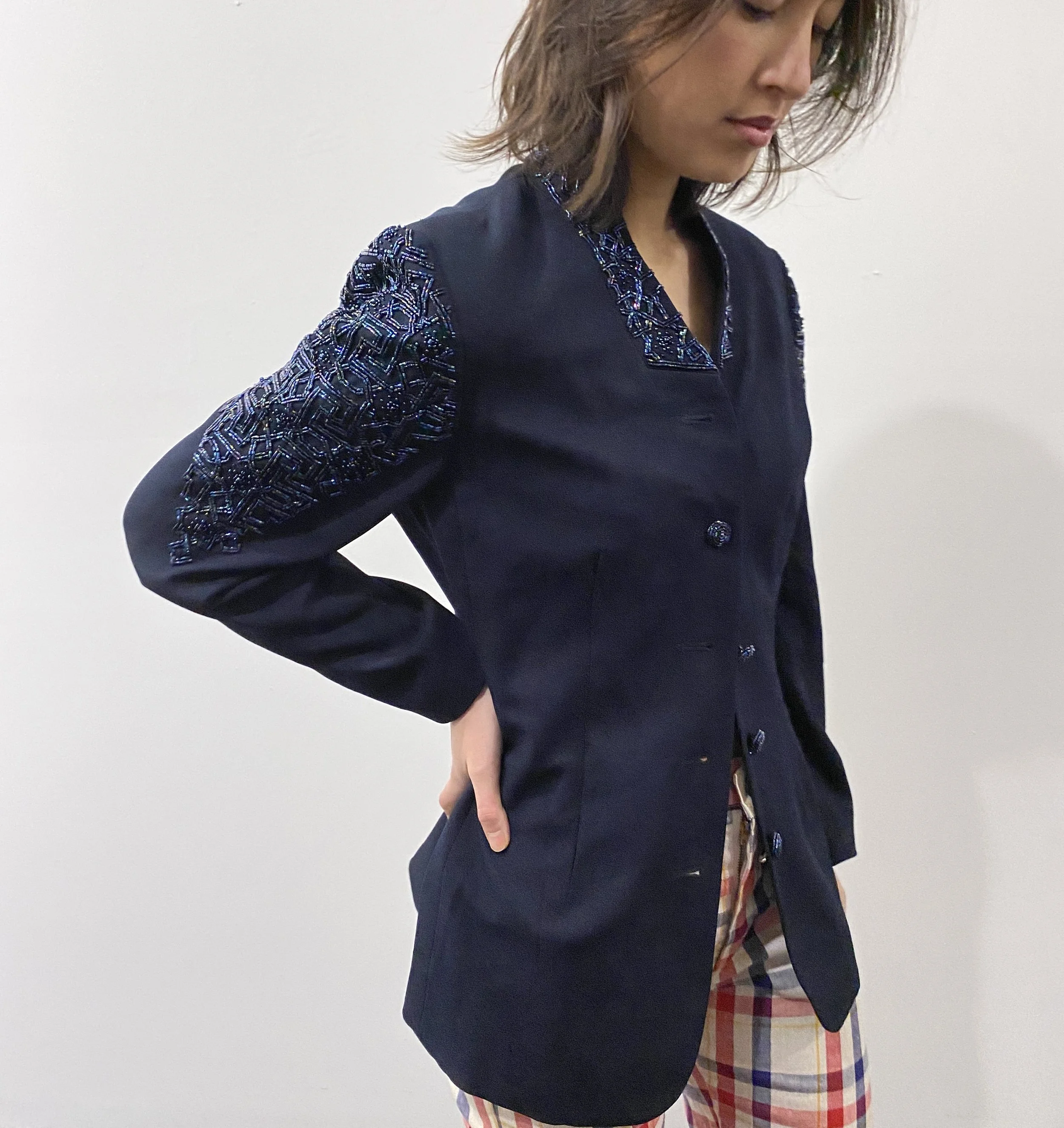 OUTERWEAR Categories: All Outerwear Tops All | Outerwear | Tops | vintage kids shrunken denim jacket / mickey mouse applique embroidered back patch $118.00 vintage beaded blazer / navy blue formal wear womens jacket $98.00 vintage Versace black wool blazer / 90s Versace womens jacket $328.00 vintage Wrangler denim jacket / 1970s denim Wrangler four pocket jacket $278.00 1970s Yves Saint Laurent blazer / 70s tailored linen blazer $298.00 Levi’s orange tab reversible denim and shearling vest $98.00 vintage LL Bean quilted jacket / kids LL Bean jacket / childrens brown snap front quilt chore jacket $62.00 vintage Maverick denim jacket with back patch / 70s denim jacket / 1970s jean jacket / 4 pocket denim jacket $198.00 vintage Dior grey bomber jacket / 80s Christian Dior cotton zip jacket / Dior track jacket $178.00 vintage Norma Kamali jacket original OAK sample / cropped sparkly denim jacket / metallic disco moto jean jacket $300.00 vintage 50s houndstooth wool jacket / 1950s black and white plaid blazer $148.00 vintage Pierre Cardin jacket / 80s purple windbreaker / 1980s nylon pullover track jacket $124.00 vintage Peugeot track jacket / 80s sports car bomber jacket $128.00 womens 1950s blazer / 50s womens cropped jacket / navy blue wool blazer $98.00 vintage womens wool coat with fur trim / 60s lilac coat with fox trim $278.00 vintage Sonia Rykiel wool blazer / vintage wool tweed blazer $148.00
