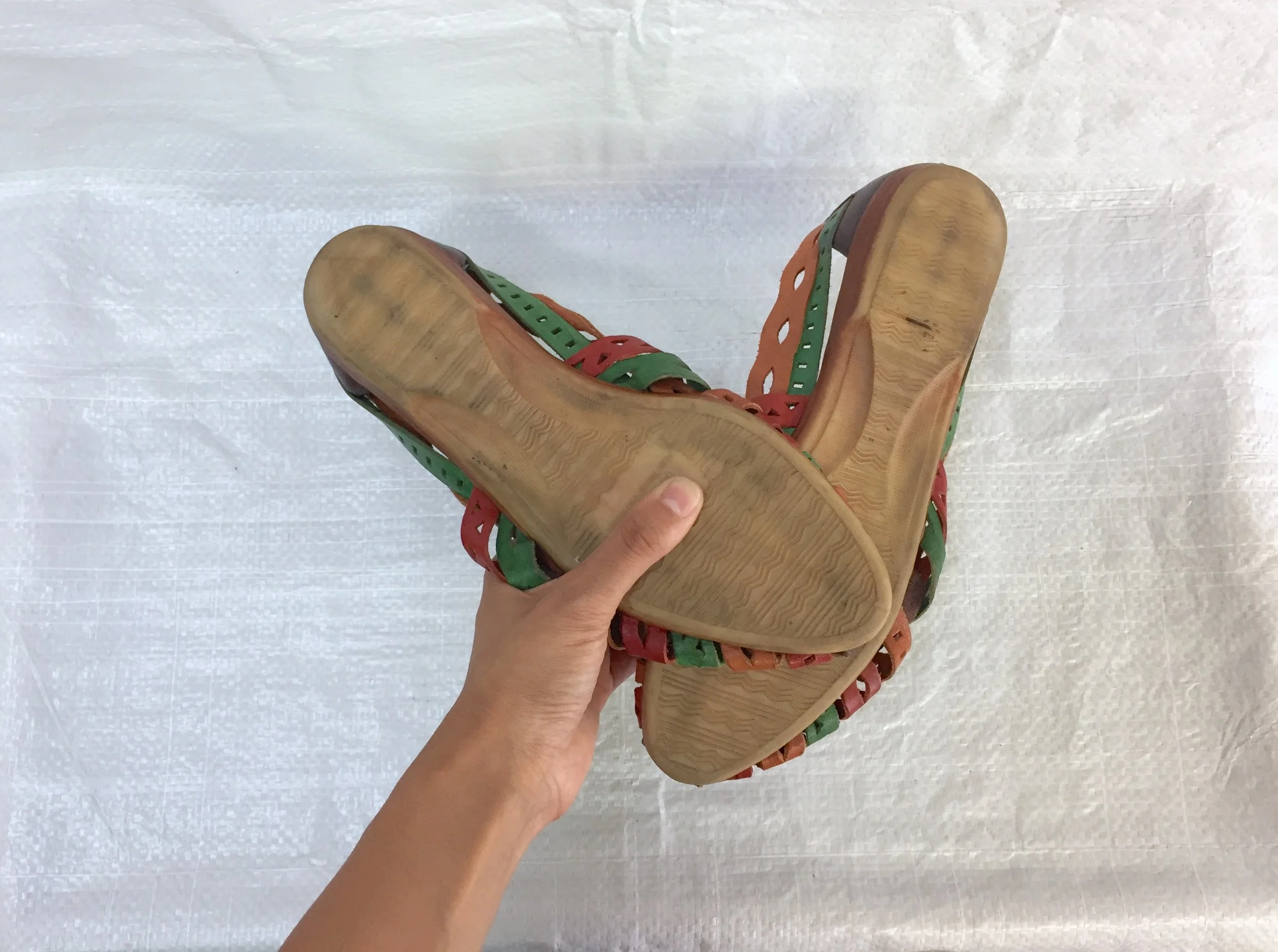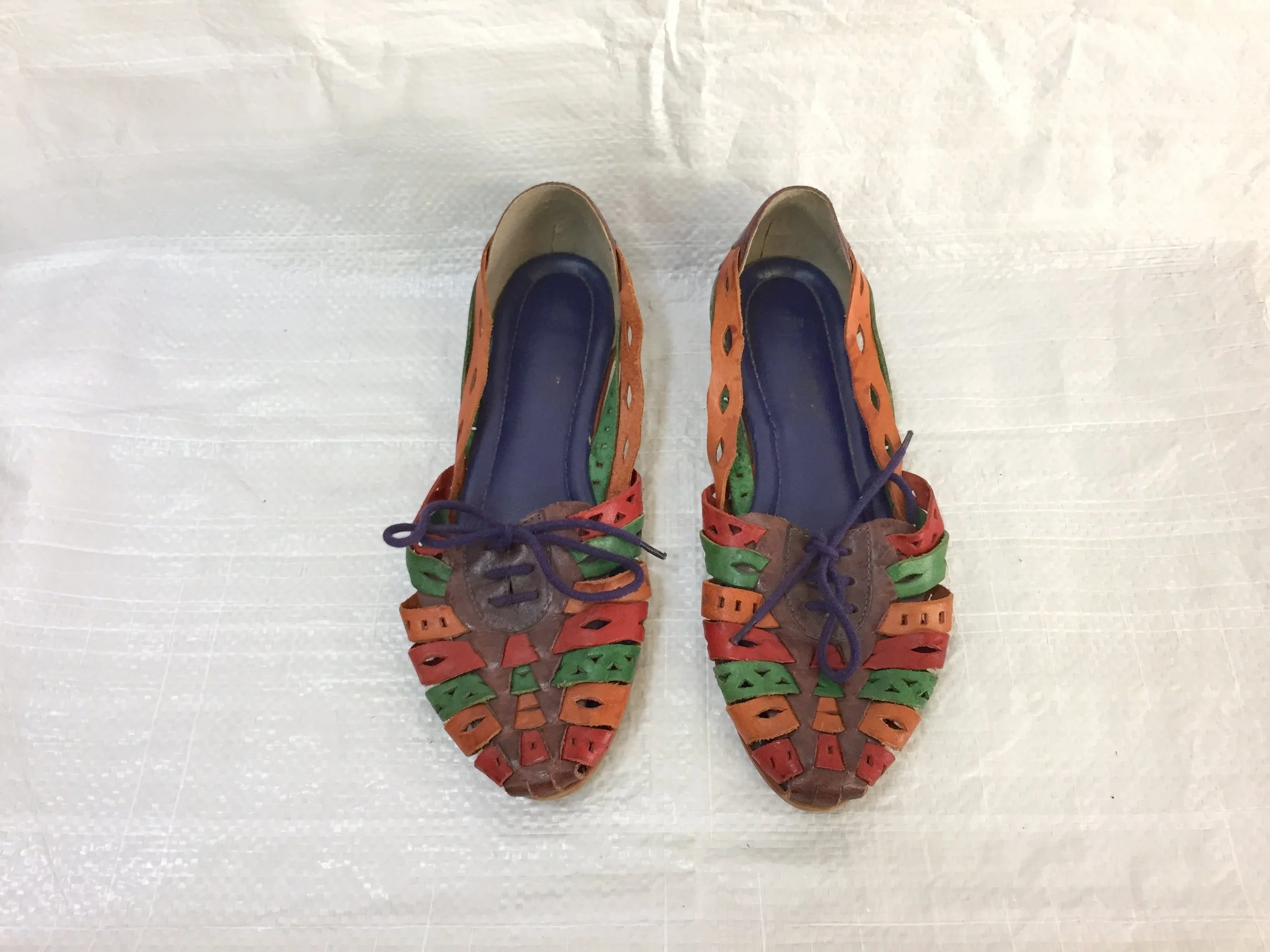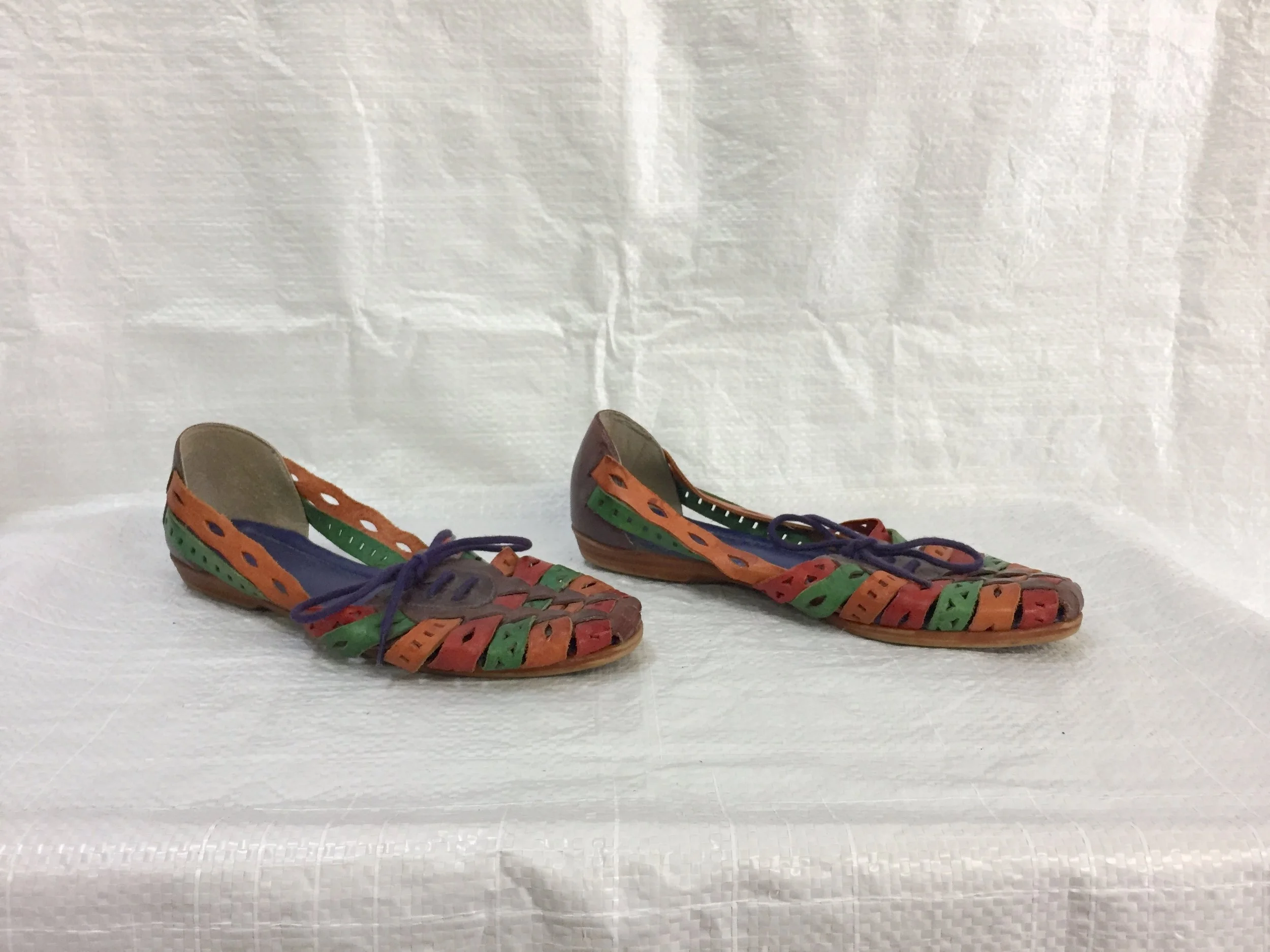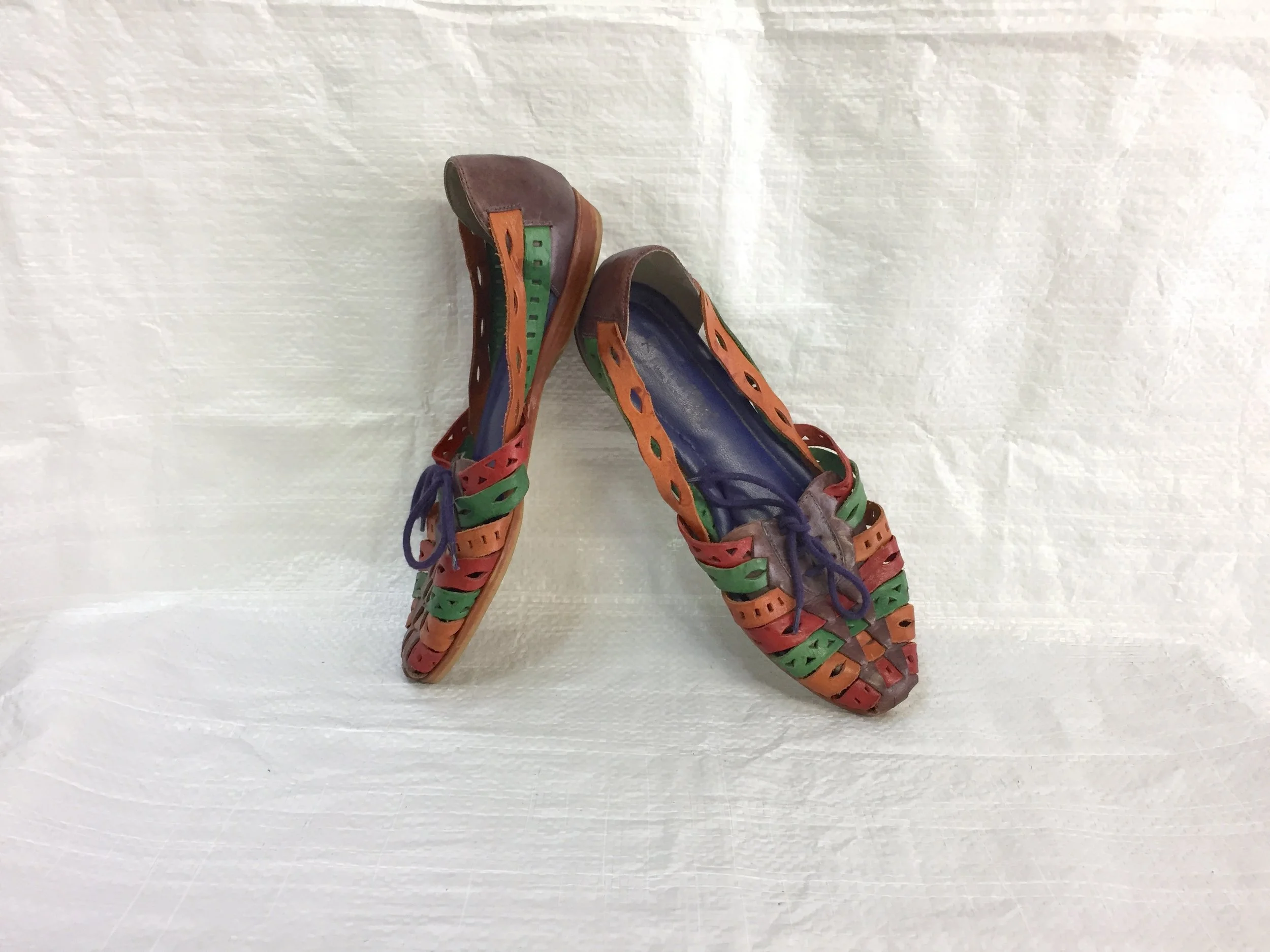 - vintage 80s color block cutout leather woven huarache sandals